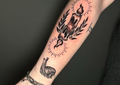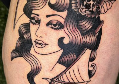 I’ve been an artist my whole life whether it was painting, crafts, or making really bad fan art in middle school. I started tattooing almost a year after graduating high school. At first I really didn’t know what I wanted to do, or where I wanted my life to go. Once I started getting tattooed myself, and seeing the confidence it gave others, I knew it’s what I wanted to do.