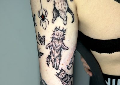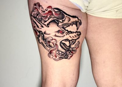 My favorite tattoos to design are bold tattoos mostly in darker styles or American traditional. The thing I most enjoy about tattooing is the process of learning and executing a new style or idea. Feel free to message me with any questions or ideas you have and we can work together to make a unique design.