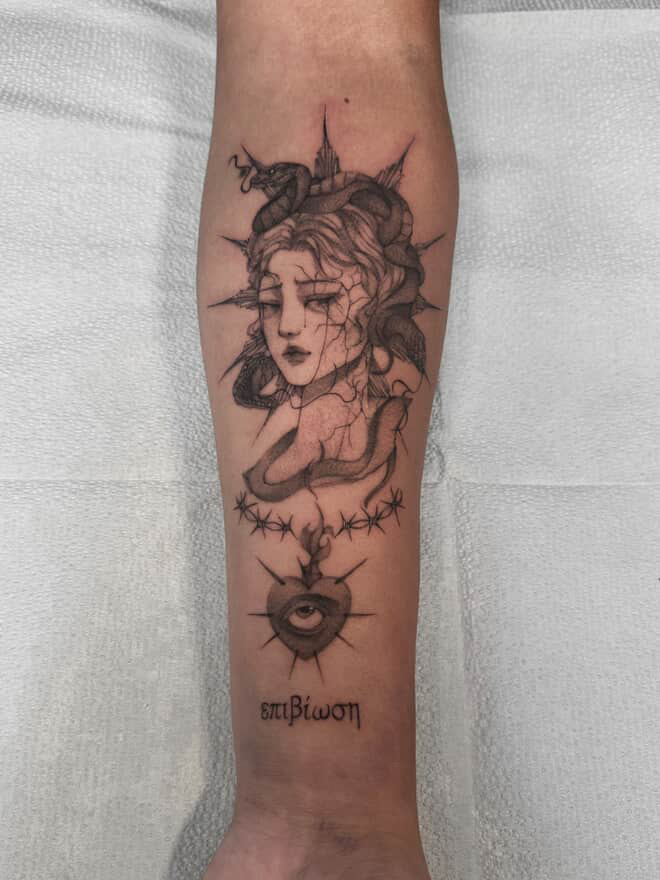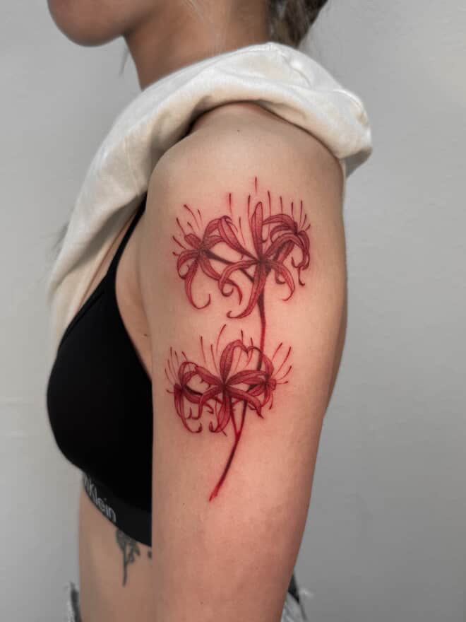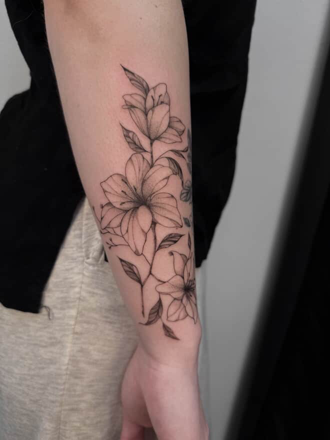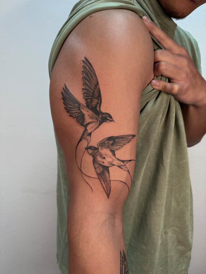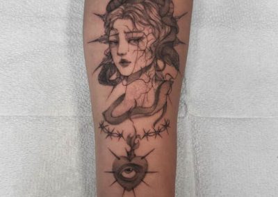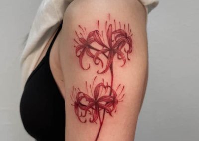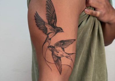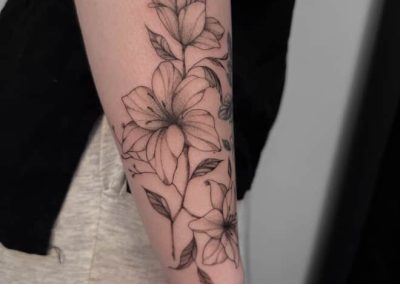 Hello! My name is Xin, I’m originally from Taishan, China, and I’ve always been in love with art and crafts. I started tattooing right after high school (in a bit of a panic, not knowing what else to do!) and quickly fell in love with it. I adore doing fine-line/delicate tattoos as well as bolder pieces as well. Currently, I’m passionate about developing my style and creating meaningful art for others to wear forever.